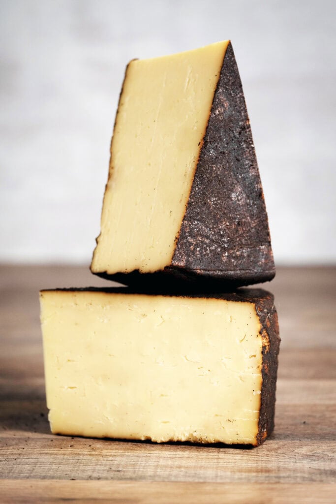 This zippy rubbed-rind cheese is no stranger to the award circuit; in 2025, it took First in its category at ACS. The base starts with pasteurized cow’s milk from Jersey cows. Once the cheese is formed, it’s rubbed with a combination of ground espresso and lavender, which enhances the bright nuttiness of the cheddar without overpowering it. While addictive on its own, Barely Buzzed is another flavored cheese that lends itself incredibly well to pairing. Robust sips like Cabernet Sauvignon and stout beer enhance the depth of flavor in the floral, coffee-forward rind, while bites of chocolate and toasted nuts bring out the cheddar’s caramel notes. MT