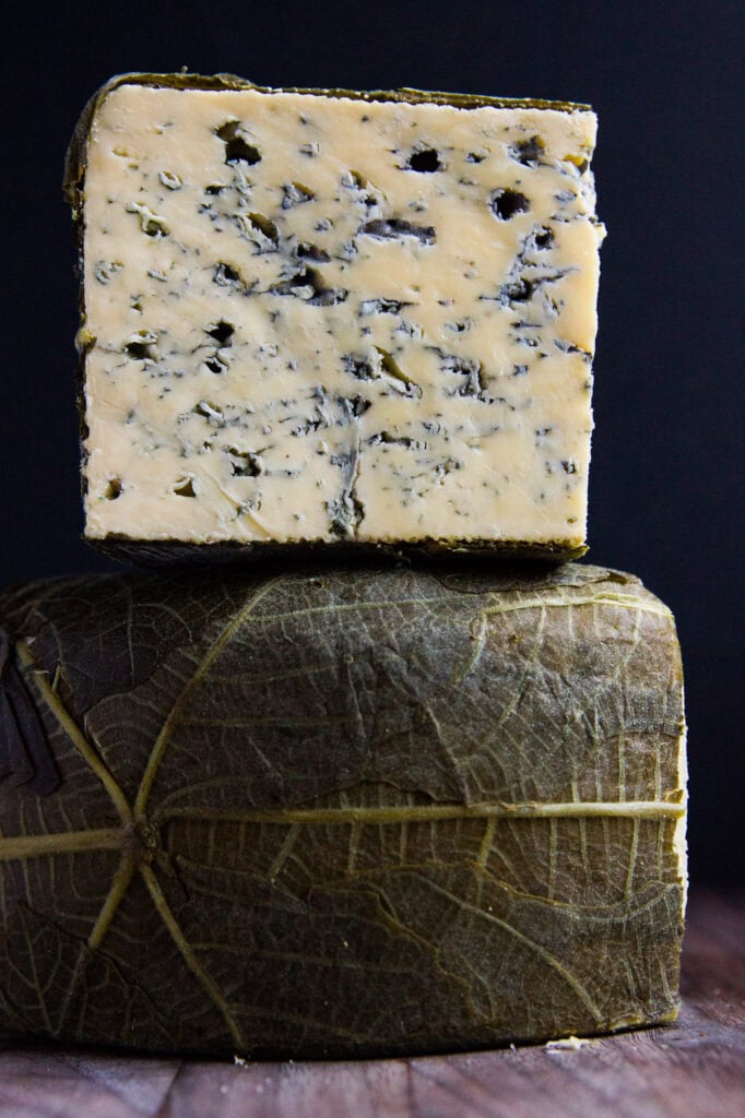 Nero Fumè—or “smoked black” in Italian—is exactly the kind of name you’d expect for a cheese that’s aged in barrels with black tea. Sergio Moro, third-generation owner of Moro Formaggi, is known for his experimental blue cheeses, and this tea leaf-coated wheel is no exception. It starts with locally sourced pasteurized cow’s milk and is smoked during the 60-day aging process, which produces a complex, earthy, and robust flavor. The rind is dark and smoky while the paste is rich and creamy. Whiskey, black tea, chocolate, and dried fruits are perfect pairings to enhance this blue’s natural flavors. MT