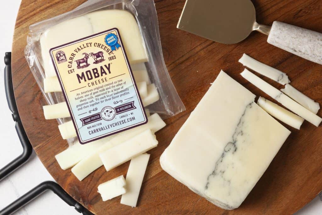 A Wisconsin take on a French classic, Mobay draws inspiration from Morbier—the cow’s milk cheese known for a line of ash running through its center—but instead, Mobay comprises a layer of sheep’s milk cheese and a layer of goat’s milk cheese separated by grape vine ash. Crafted by Master Cheesemaker Sid Cook and aged a minimum of 120 days, the result is a visually striking and delightfully nuanced cheese. Mobay earned Best of Class in its category at the 2025 USCCC, cementing its place as a standout in Carr Valley Cheese’s lineup.