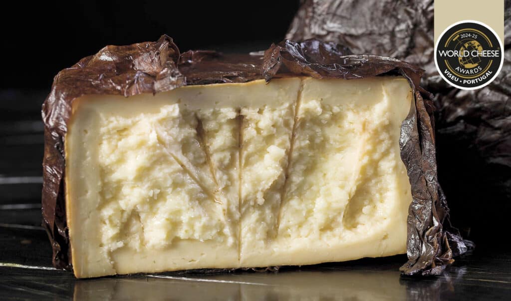 Queijo de Ovelha Amanteigado hails from a tiny Portuguese town but won Super Gold on the international stage at the 2024–2025 WCA, where it also claimed World Champion Cheese, Best Portuguese Cheese, and Best Raw Milk Cheese. Butter yellow in color with a washed rind, this humble, mild yet slightly funky cheese can be spread on bread or spooned right into your mouth.