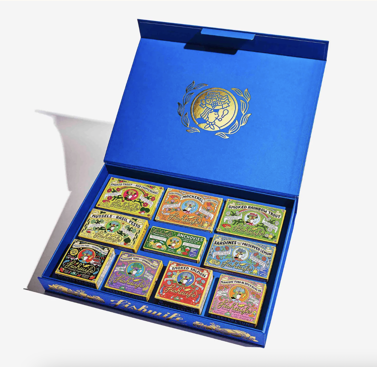 Fishwife gathered their greatest hits—from smoked trout and basil-pesto mussels to Sichuan chili-crisp salmon and preserved-lemon sardines—and wrapped them in a gorgeous gift-ready box.