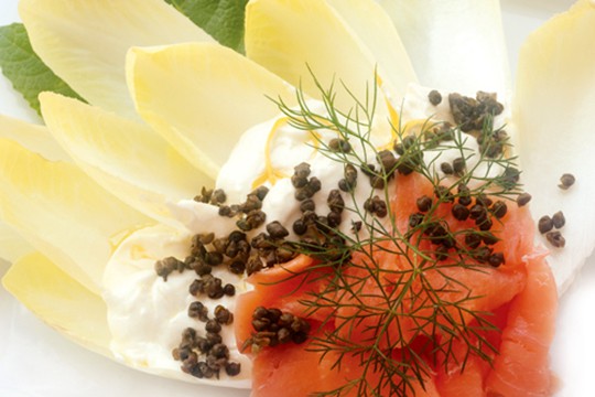 Endive Nachos with Lemon-Ricotta, Salmon, & Capers