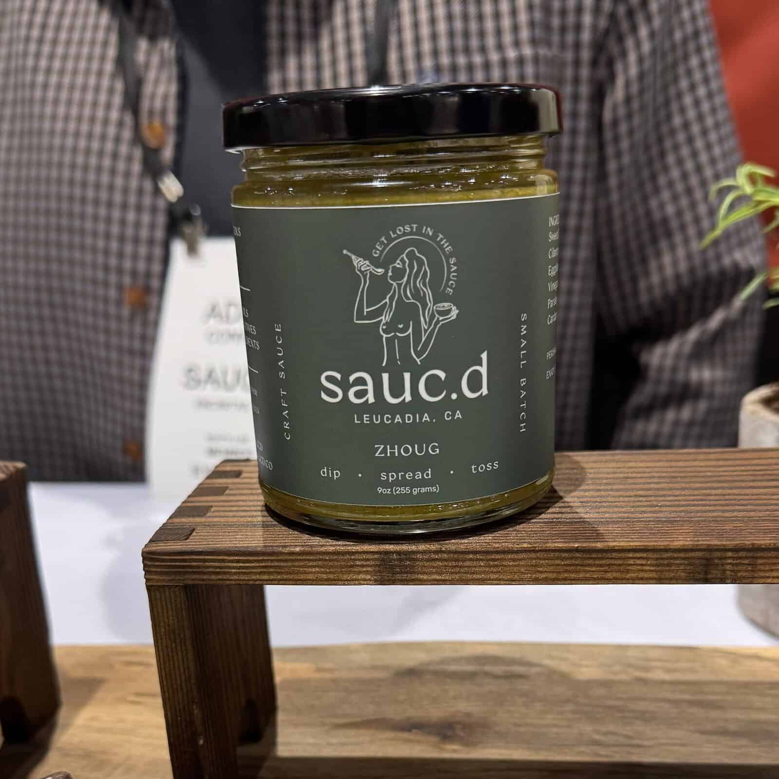 Sauc’d Zhoug — Herbaceous, zesty, and gently spicy: cilantro + jalapeño energy with roasted eggplant and toasted spices for depth. Pair with feta-style cheeses, bloomy rinds, or grilled halloumi.