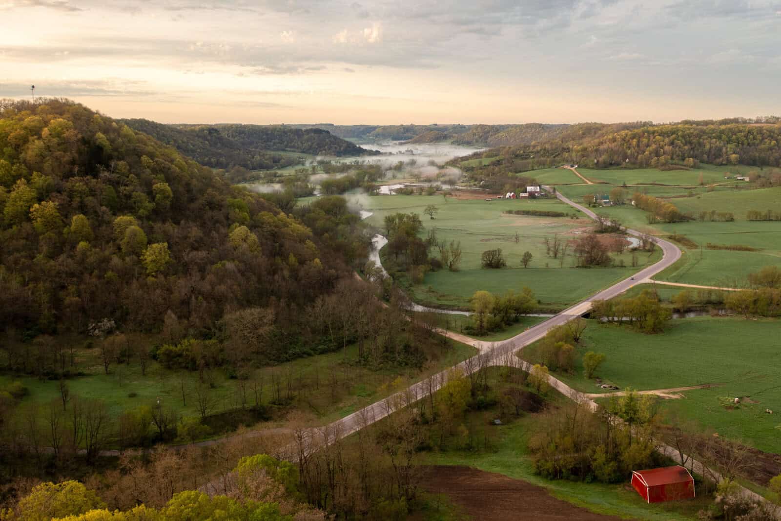 During the last Ice Age, the glaciers missed this rough, oval-shaped part of the upper Midwest that spans parts of Southeast Minnesota, Northeast Iowa, Northwest Illinois, and Southwest Wisconsin. This lack of glacial drift—the sediments deposited by glaciers—is why the region is called “Driftless.” It’s the only unglaciated spot in the world, completely surrounded by flat land bulldozed by ice: A 24,000-square-mile island standing prominently with rolling hills, deep valleys, winding rivers, streams, and numerous rock outcroppings, with striations displaying the history of various ancient geological events.